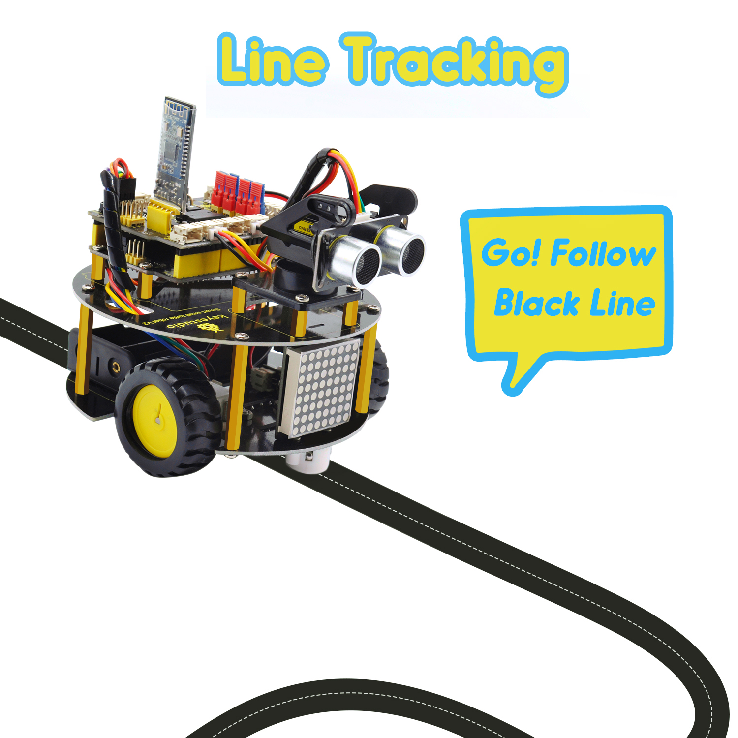 3)Three groups of line tracking modules, to detect black-white line with higher accuracy and can also be used for anti-fall control.