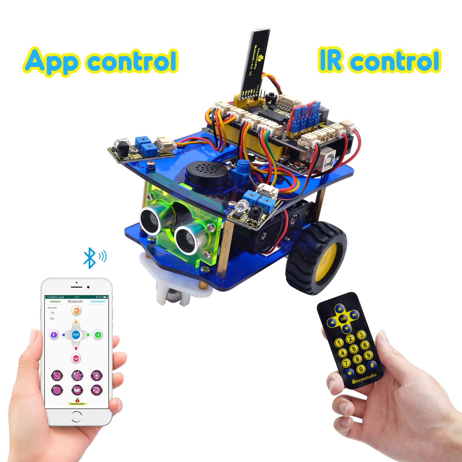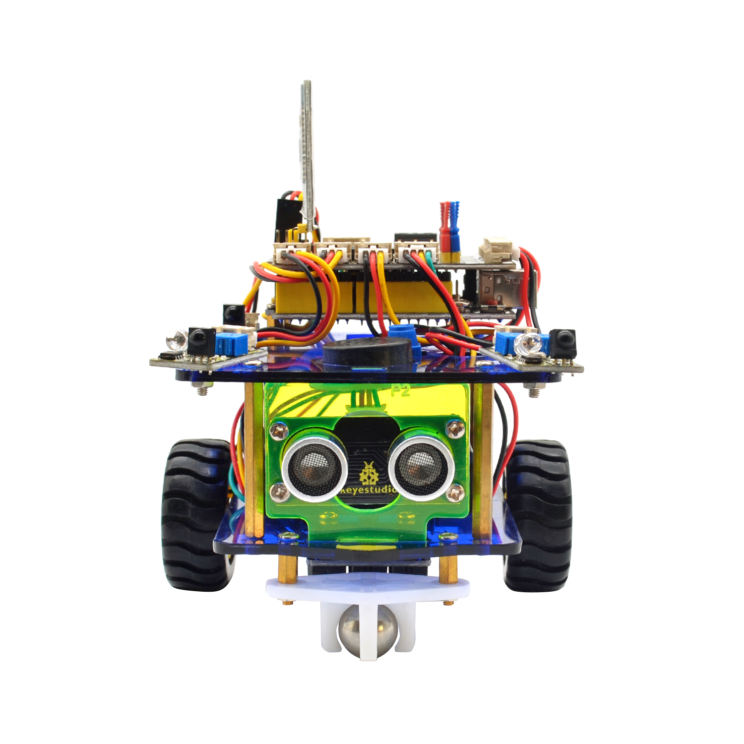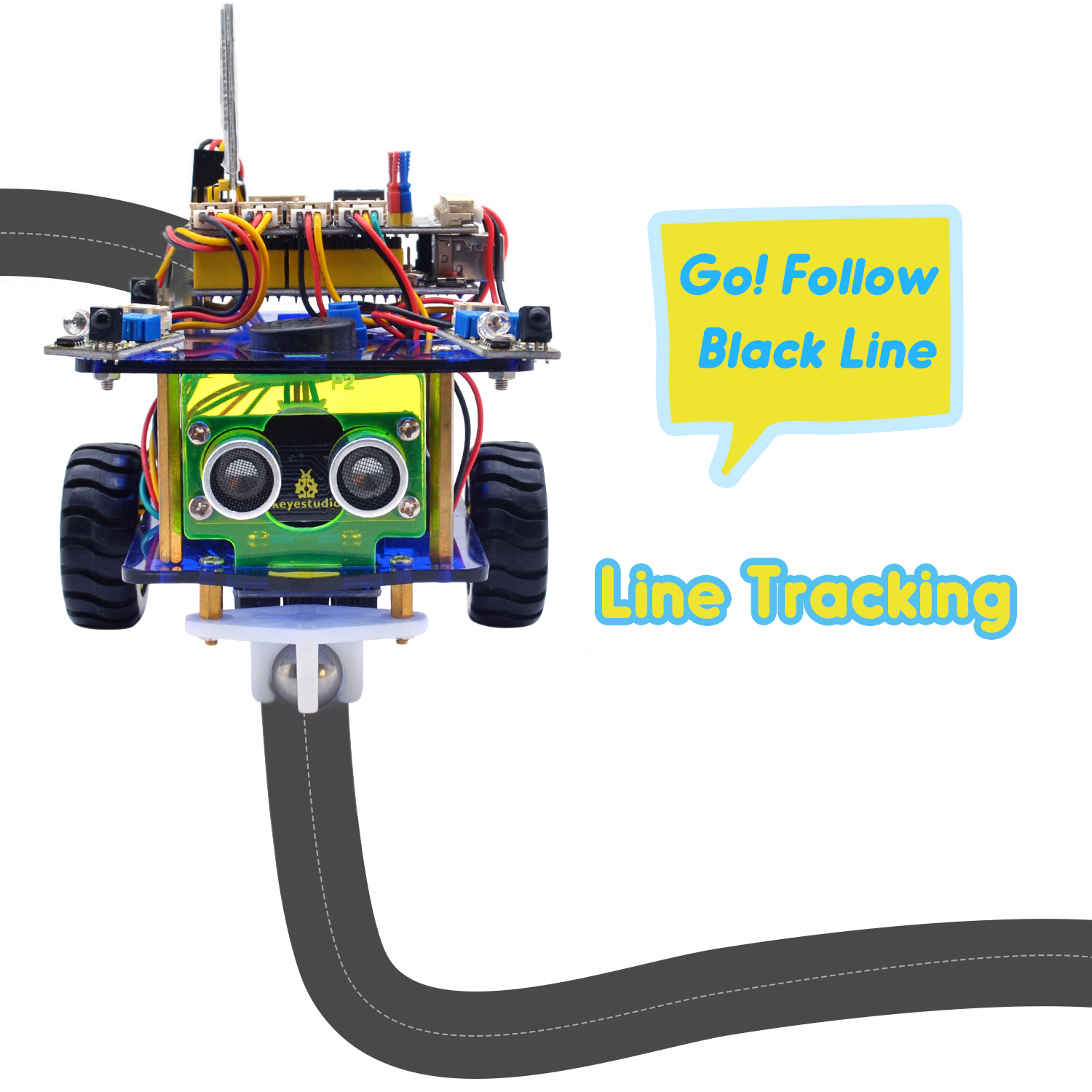 The smart car still keeps the functions like line tracking, obstacle avoidance, IR and Bluetooth control and more.