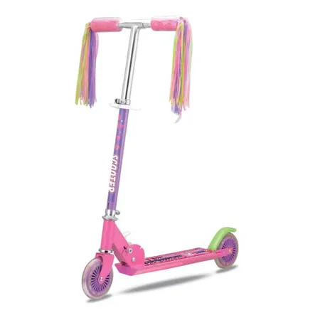 This pink kick scooter is a perfect birthday gift for your little girl. The kick scooter features a sturdy aluminum and steel frame with two PVC wheels. The colorful tassels on the handles add more appeal to this kick scooter.