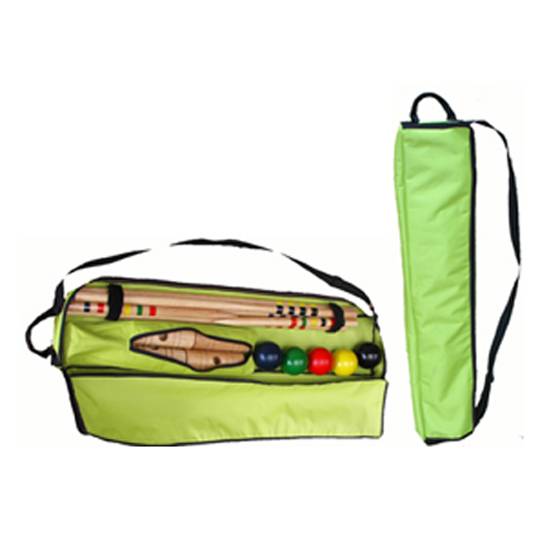This is a toy croquet set for kids and children. It includes stakes, mallets and five balls. A maximum of 4 players can play together.