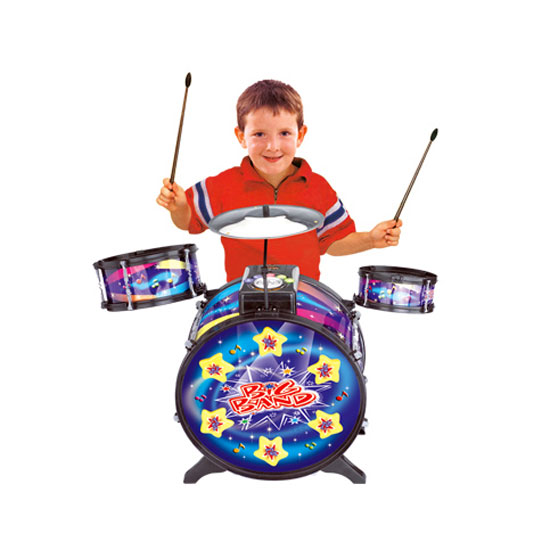 This kids' drum set comes with star patterns for a stylish appearance. The drums are professionally made for realistic sound effects. It is a great toy for developing your kids' music talents.