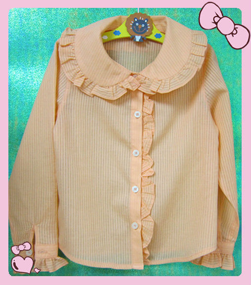 • Peter-pan collar with ruffled trims.
