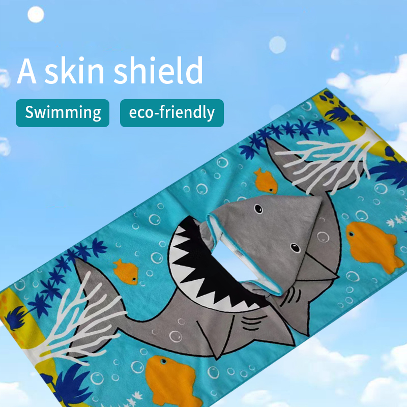 Kids' poncho, lightweight, water-resistant, easy to put on and take off.