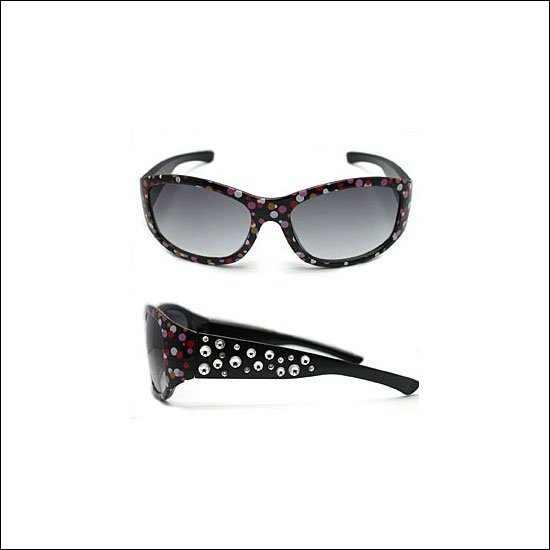 • PC frame and temple in black with colorful dots on the face and electroplate dots on arms