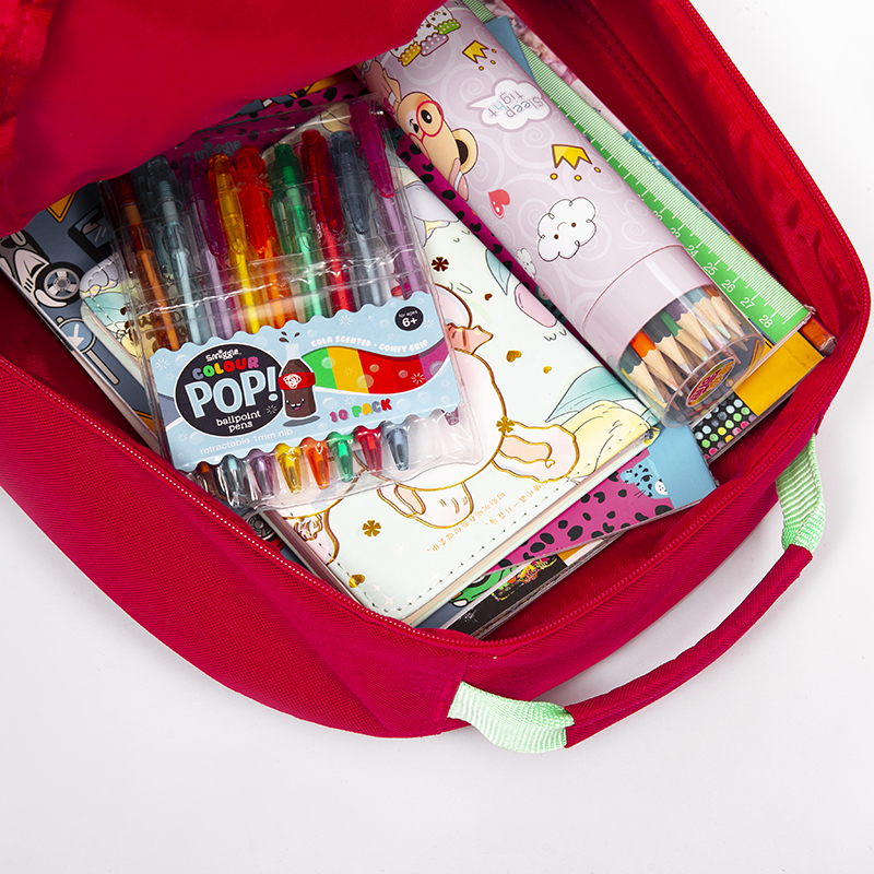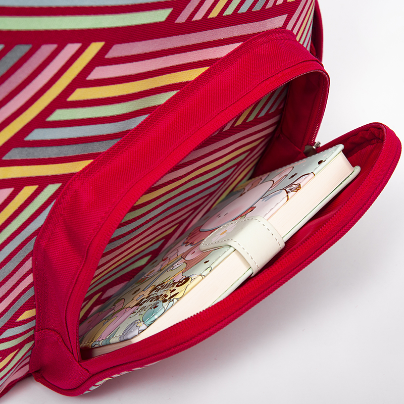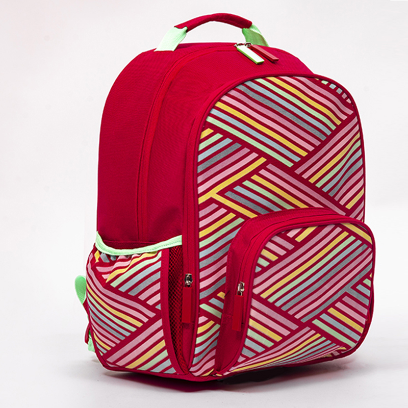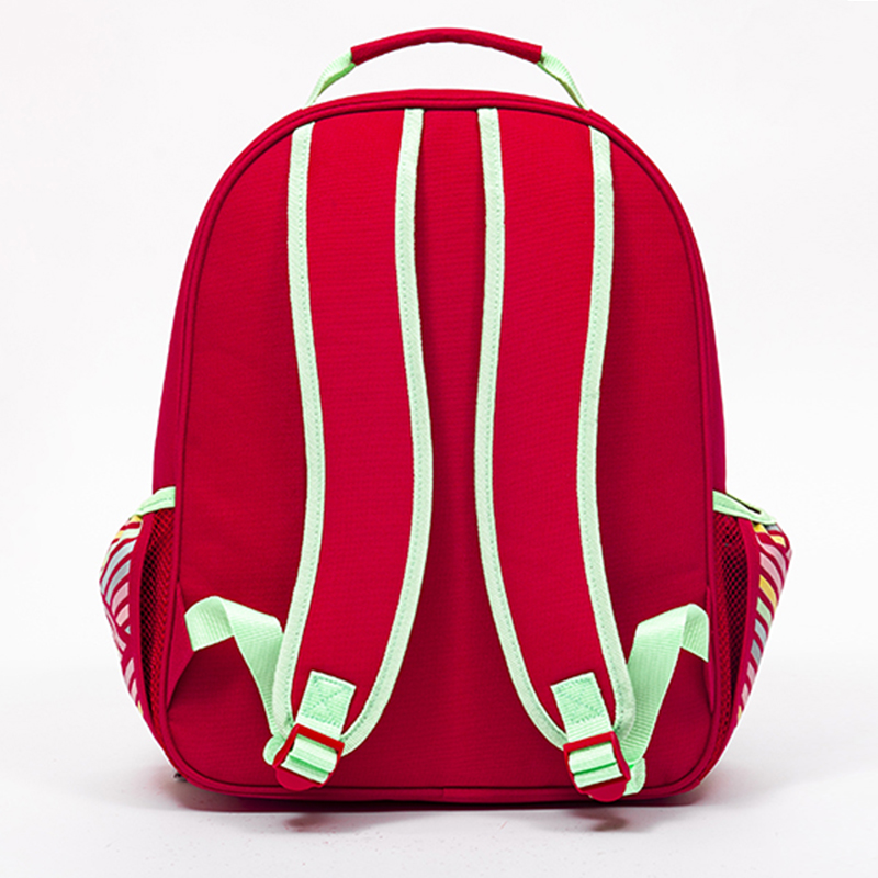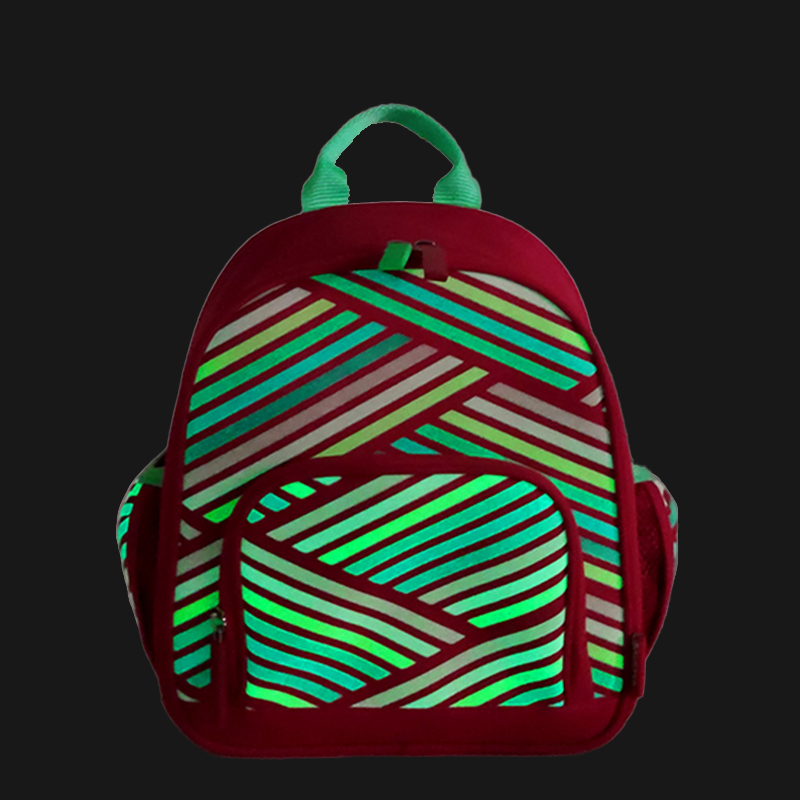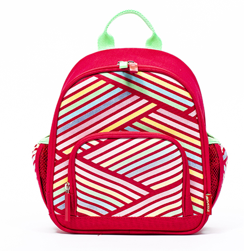 This backpack is designed for kids and has a spacious zippered main compartment adorned with luminous printing patterns. It has a front zipper pocket with lace accent and has pockets on each side for bottles, cups, keys, etc. The kids backpack has a small handle on top for hanging and has padded adjustable straps for comfortable carrying.