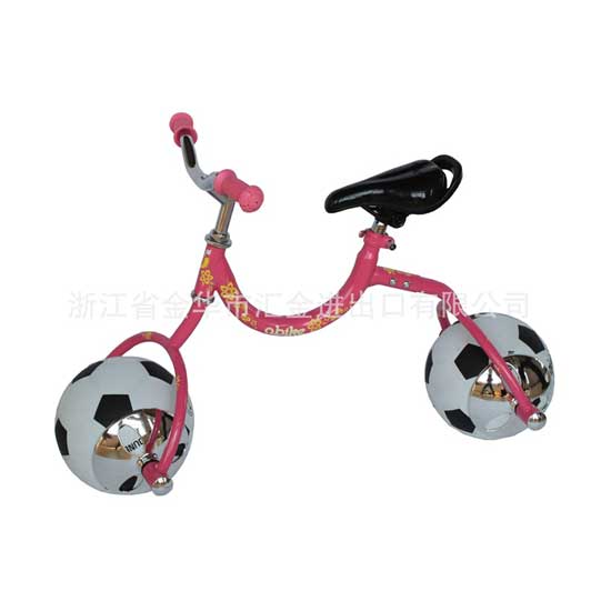 This is a lovely children's bicycle designed with two football wheels for a unique touch. It features a bright pink surface with yellow flower patterns. The construction is meticulously engineered to ensure dependable performance.