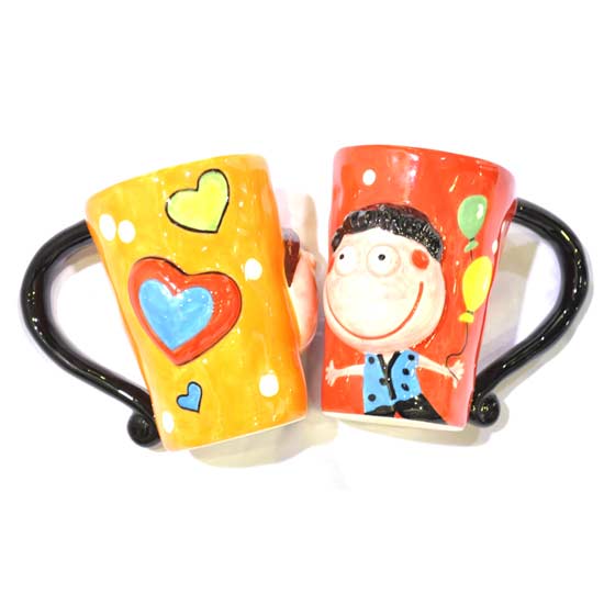 The adorable kids' cups feature full-color heart or cartoon icons with large C-shaped handles in contrasting black. The heavyweight ceramic construction offers a touch of sophistication. Enjoy your favorite beverage in style with these quality ceramic mugs.