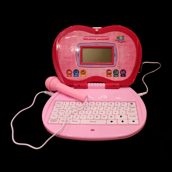 Showcased here is a kids' learning computer that features numerous functions. It comes with a digital display and keyboard for easy operation. This fancy machine serves to stimulate learners' interests and provides entertainment.