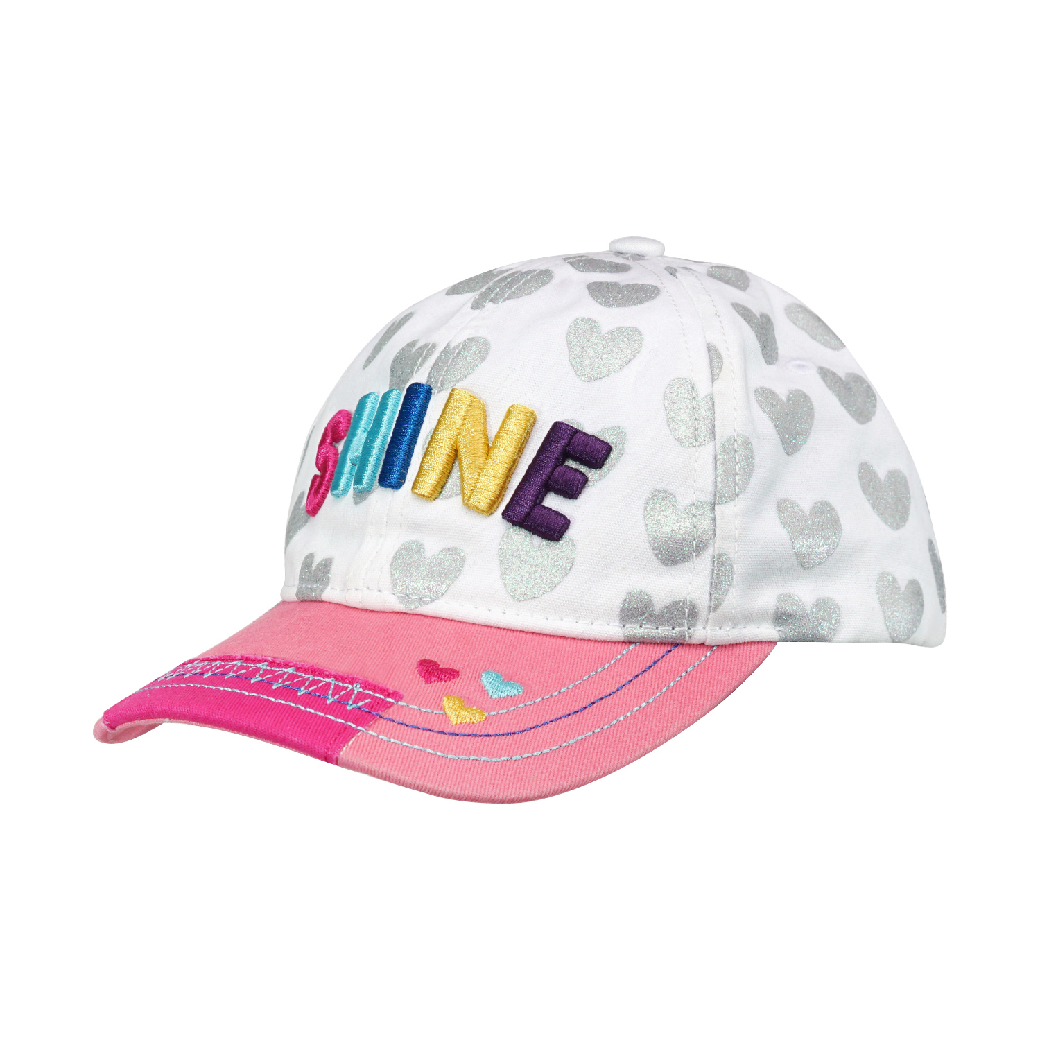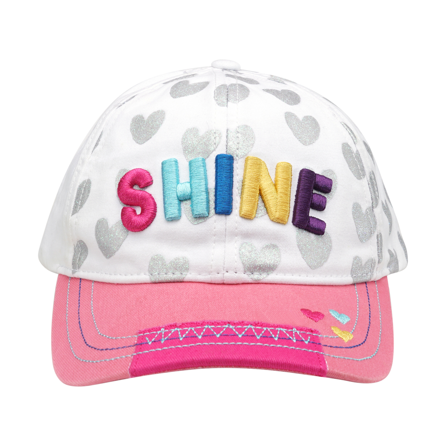 - Colorful and happy design: Curved bill, front 3D embroidery in rainbow colors, contrasting topstitch details, glittering heart prints all over.