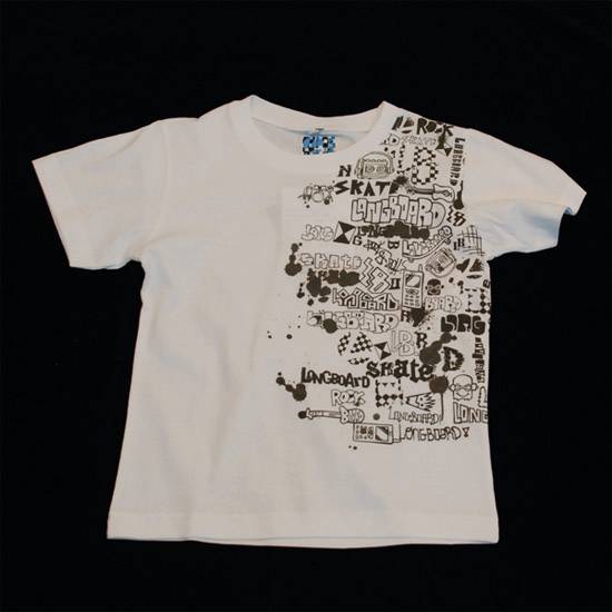 This white kids' T-shirt has a complex and eye-catching pattern in black on the left hand side. This cotton T-shirt is extremely soft, comfortable and breathable. This round-neck T-shirt is machine washable.
