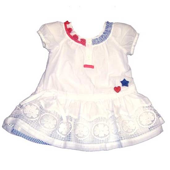 The kid's dress comes in a design with a round-neck and a pair of cap sleeves. The floral embroidery adds a touch of decoration. Dress your little girl cute in this lovely dress.