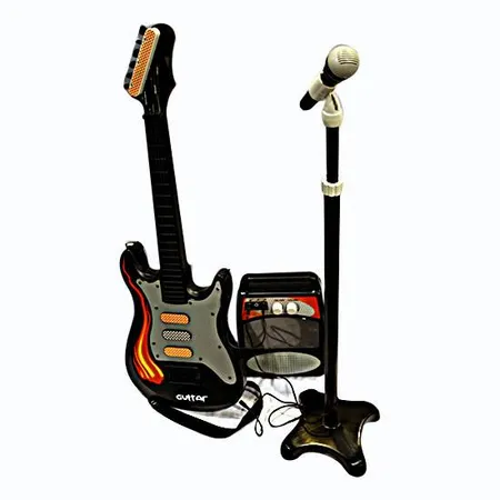 This luxurious guitar performing set comes with a guitar, a mic stand and an amplifier. The height of the mic stand is adjustable for different needs of kids. The volume of the amplifier is adjustable as well, which makes the set suitable for playing with at home and performing on the stage.