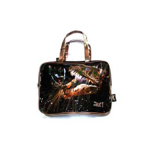 Shown here is a kids' fashion handbag with a precise design in a rectangular shape. The printing of a T-rex fossil on this handbag conveys a sense of uniqueness. This stylish handbag is an ideal fashion accessory to enhance kids' outfits in style.