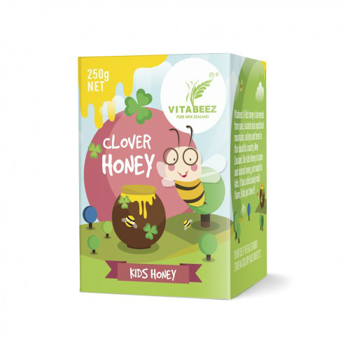 Vitabeez Kids honey is harvested from pure, isolated and unpolluted mountains, valleys and forest in this beautiful country, New Zealand. Our kids Honey is a pure and natural honey, just made for kids. It has a deliciously mild flavor, Kids just love it! A range of products include Passionfruit honey, Feijoa honey, Manuka Blend honey, Blueberry honey, Cherry honey, Strawberry honey, Clover honey, Kids honey family pack