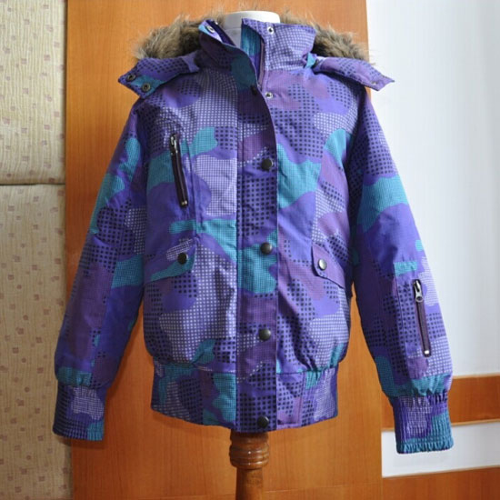 This is a kids' winter jacket that is fully accented with colorful prints. It is designed with a hoodie collar, a zip-up front, two side-entry pockets and long sleeves. This kids' winter jacket is soft and comfortable to wear.