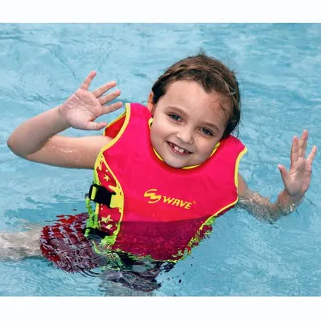 This life vest boasts an eye-catching fuchsia color. It features adjustable side straps to keep it in place and prevent the wearer from slipping out. The soft and comfortable vest is easy to clean. Keep your child safe during boating fun with this floatation device.