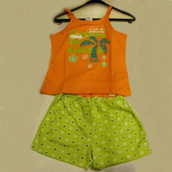 This nightwear set consists of a pair of shorts and a tank top. The tank top features spaghetti straps and the front is printed with adorable figures. The shorts feature lovely polka dots and an elastic waistband. This comfortable set is an ideal nightwear for girls.