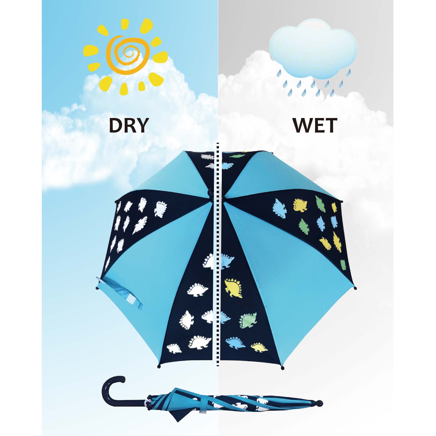 Protect little ones from sun and rain with this kids’ straight umbrella. It has a metal shaft with metal ribs and has a 190T nylon fabric canopy. The canopy of this umbrella is decorated with lovely dinosaur patterns that will change colors when wet.