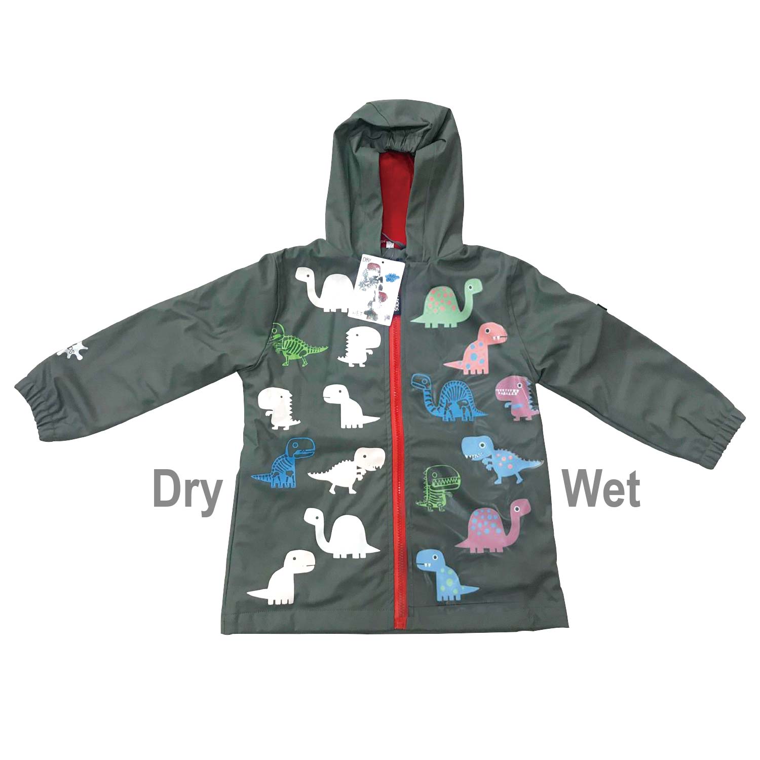 Keep children dry under the rain with this kids’ zippered PU cotton raincoat. It comes in a hooded design and has a pair of long sleeves with elastic cuffs. This kids’ PU cotton raincoat is decorated with cute dinosaur patterns that will change color when wet.
