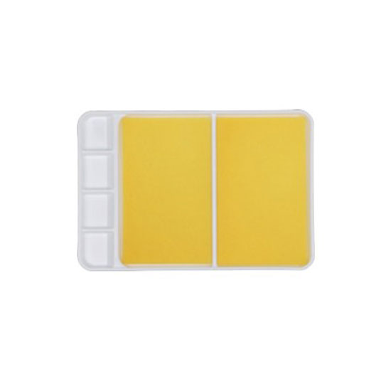 This is a kids' palette that comes with sponge pads. Designed with spaces of different sizes, this palette allows rollers, stamps and brushes to be used. In a compact size, this kids' palette is easy to clean.