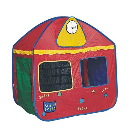 Displayed here is a kids' play tent made of polyester in vibrant colors. It is equipped with a spring steel frame for enhanced durability. The house-shaped design makes it stand out from the rest.