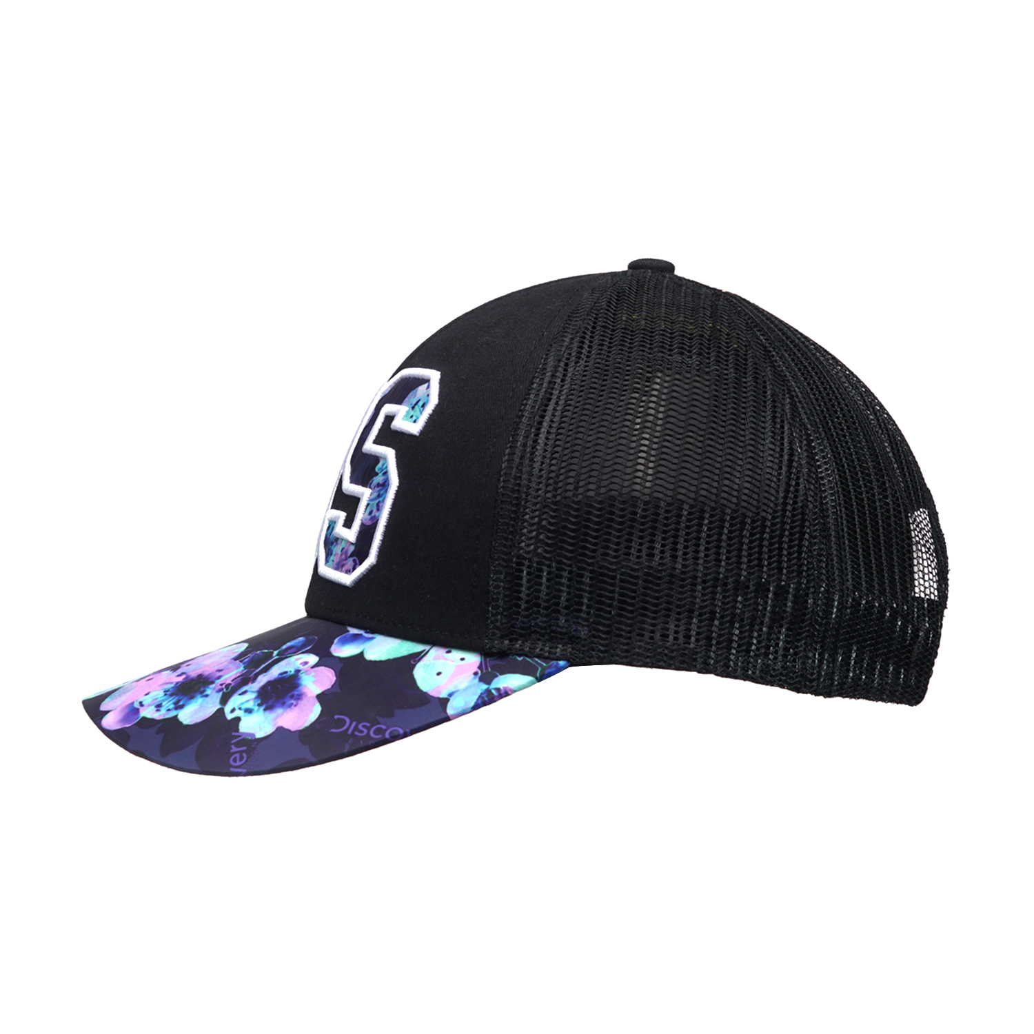 A well-made structured kids printed cap featuring high-quality sublimation printing and an embroidered logo at the front. This comfortable, one-size-fits-most kids cap is crafted with a cotton and polyester fabric, and a black mesh back with plastic snap closure.