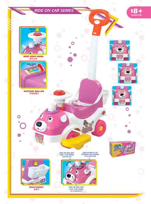 Adorably contoured to a cartoon bear, this ride-on car surely will bring much fun to your kids. It flaunts the music playing function while riding for an extra-enjoyment.