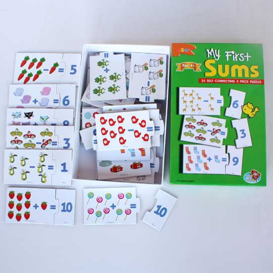 The educational puzzle is suitable for players aged 4 years old and above. It contains 24 self-correcting 2-piece puzzles in total. Players will learn basic calculations while appreciating lovely and colorful pictures.