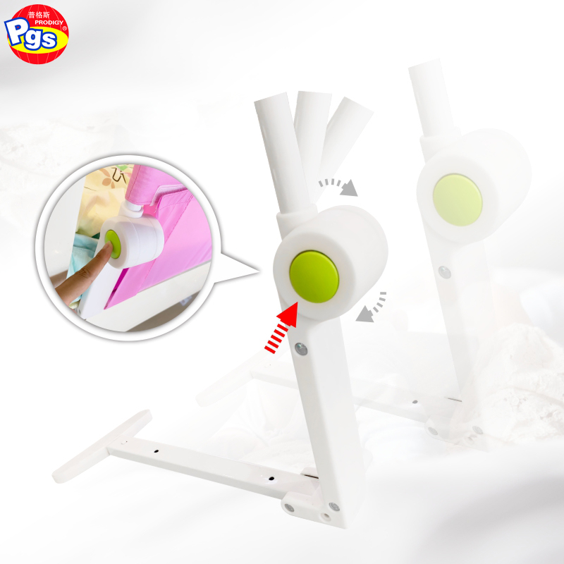Featured here is a safety bedrail to prevent kids from falling off the bed. It has a robust frame and has a mesh screen with lovely printing. This safety bedrail can be easily folded with a press of a button and is excellent for bunk bed use.