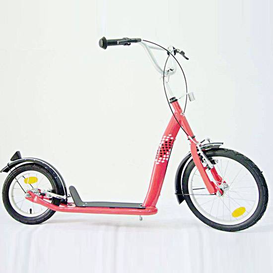 The children's scooter features air tires, F/R caliper brake and steel rims. It helps kids to acquire balancing basics before learning how to pedal on a bicycle. The low center of gravity provides superior balance and allows kids' feet to touch the ground.