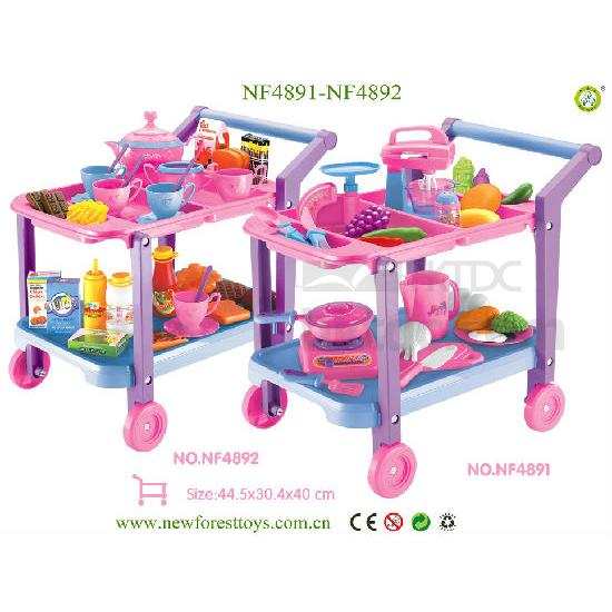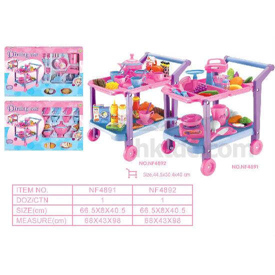 Presented to you is a fun restaurant playset that is designed for children. This playset comes with an eye-catching trolley and various kinds of food for added fun. This shopping trolley playset is made of fine-quality PU material for enhanced durability.