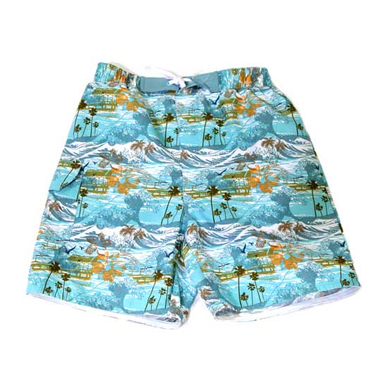 This pair of kids’ shorts is great for casual activities. It comes with allover palm tree and sea patterns. This pair of polyester shorts is finished with an elastic waist with a drawstring.
