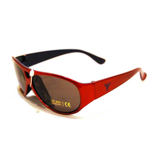 The pair of sunglasses touts a chic pilot design in metallic red. The slim profile and lightweight design offer comfortable wearing. The delicate signature logo completes the sunglasses simply with added fashionable styling.