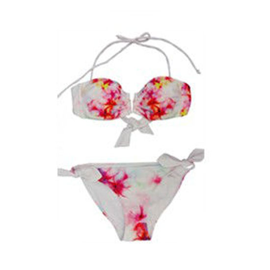 This is a ladies’ two-piece swimwear set with a brassiere and a pair of panties. The colorful floral patterns add a touch of style to the whole piece. Made of top-quality material, this swimwear set is soft and comfortable to wear.