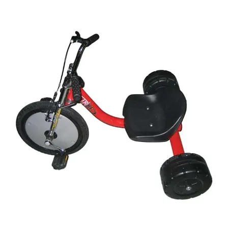 Highlighted is a kids' tricycle equipped with a comfortable seat with a short backrest. The brake levers on the right handlebar offer added safety to the rider. The tricycle makes an ideal toy for little kids.