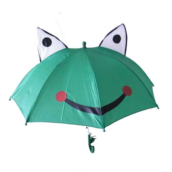 This fantastic kids' umbrella comes with the shape of a cheerful frog. This interesting umbrella features a strong, lightweight structure with a robust steel frame. The comical design with standing eyes adds fun to rainy days.