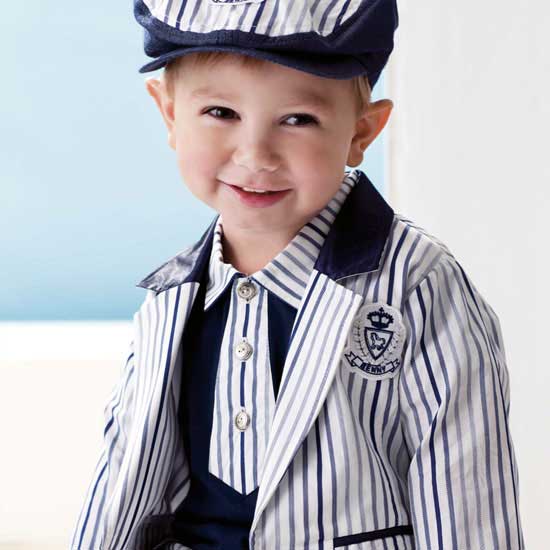 This kids’ wear set contains a hat, a jacket and a shirt coming with stylish stripes. The placket of the shirt features a tie shaped design for uniqueness. This cool kids’ wear set is made of high-quality cotton fabric for maximum comfort.