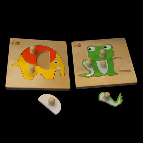 This kids’ puzzle features a rugged board with a colorful print of a lovely animal composed of puzzle pieces. Every piece is skillfully designed with a rounded peg for easy gripping. This is a great toy to train up your kid’s perception of colors and shapes.