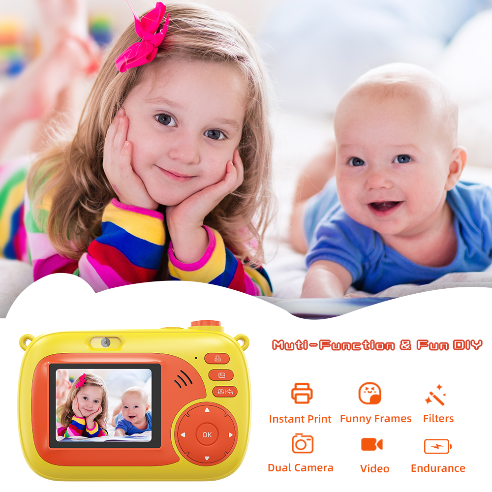 Kids Instant Print Camera adopts thermal printer technology, it is made of environment-friendly, non-toxic materials and soft silicone material. It's a great birthday gift or holiday gift, Christmas gifts for kids between 3 -12 years old.
