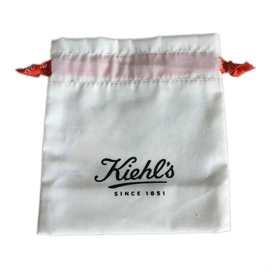 This is Kiehl's pouch in white with black logo and printed red strings. It is very robust and suitable for packing high-end items. This pouch is crafted with excellent workmanship and attention to details.