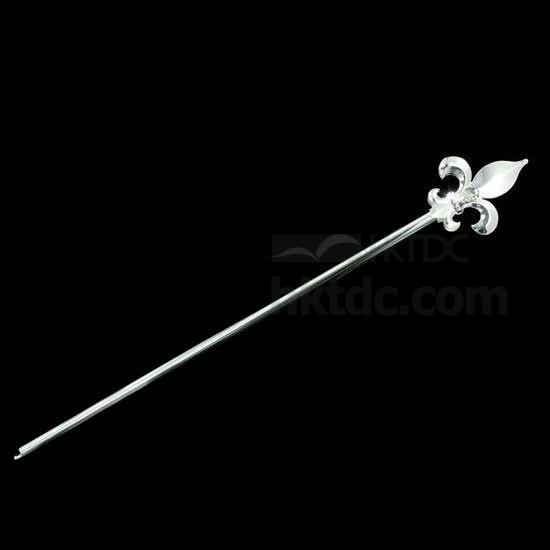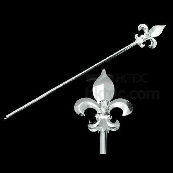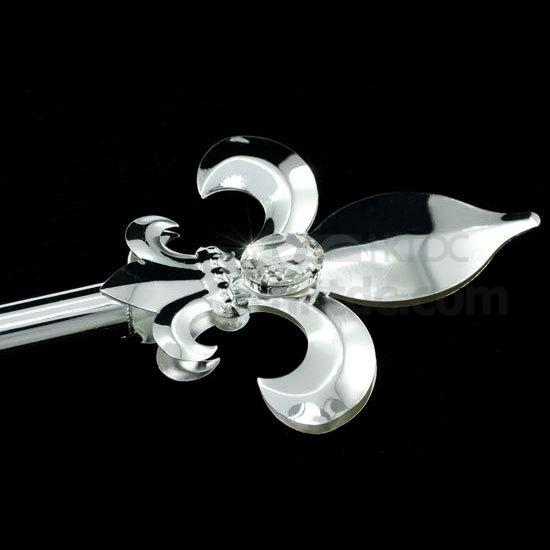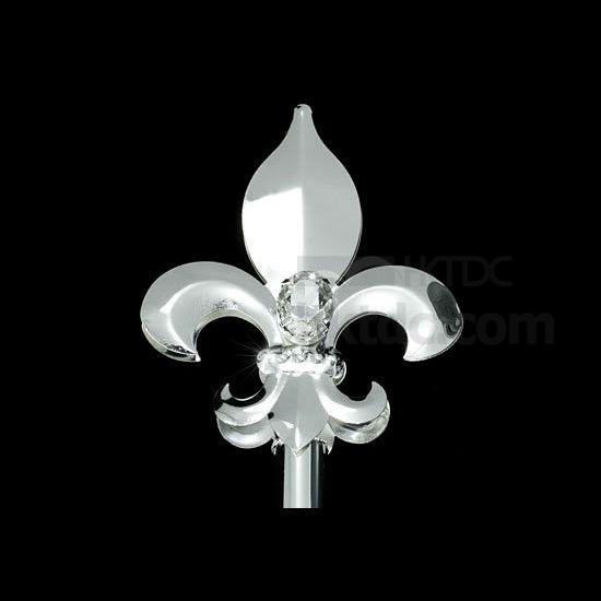 Silver Fleur De Lis crystal pageant party king men's scepter wand
