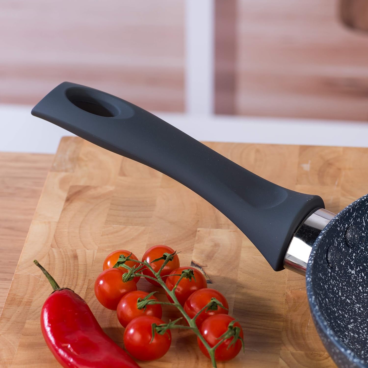 Protect wooden handles in the oven by wrapping them in aluminum foil. Washing in the dishwasher can lead to withering of the wooden handles.