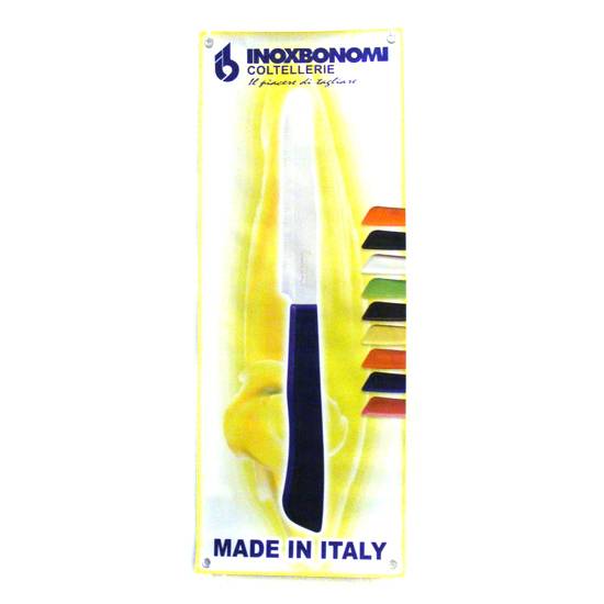 The kitchen knife with a comfortable and non-slip handle. It is made in Italy. It has a non-stick surface.