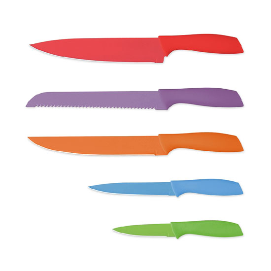 - 5pc non-stick/flower coated kitchen knife set.