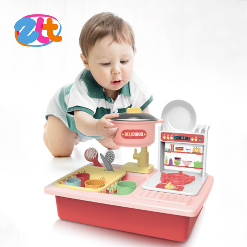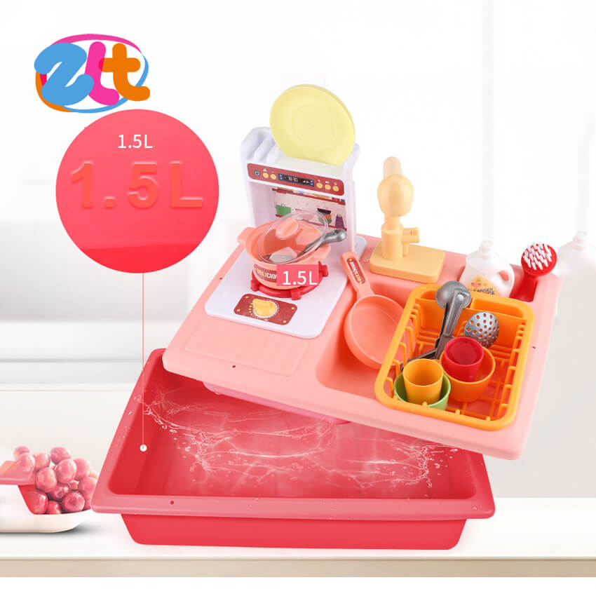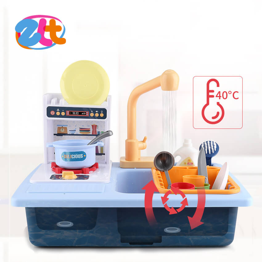 1.Imitating the real dishwashing tank, the electric circulating water is discharged, and the faucet rotates 180°.