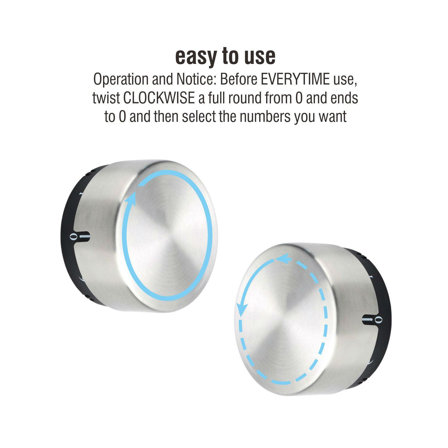 Mechanical timer - please clockwise twist a circle, then counterclockwise to the time you want to set the time scale, so that the winding on the full, so the sound will be large, ring for a long time, the normal ring error in about 3 minutes.