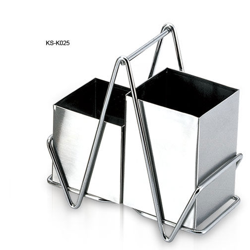 Keep your kitchen utensils organized and easily accessible using this holder. The highlighted holder comes with a square shaped design and has two separate compartments and a bar handle to the center for easy handling and carrying. Sleek and practical, it is sure to meet your storage needs in kitchen.