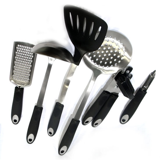- Grater, ladle, spatula, draining spoon, can opener and peeler.