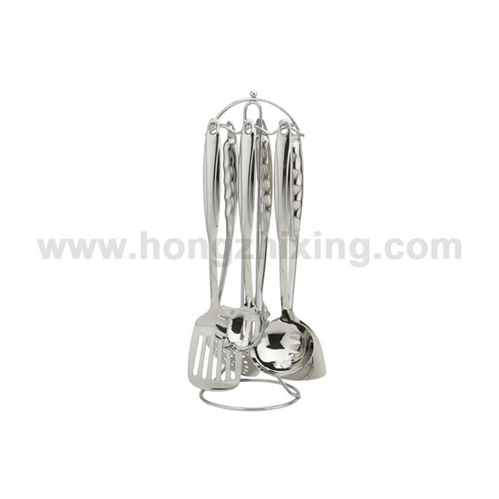 The kitchen tool set comes with 7 kitchen tools. The kitchen tools come with a hoop on top for easy hanging. Made of food grade materials, this kitchen tool set is safe to use.