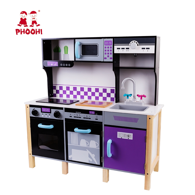 Purple Kids Pretend Play Cookware Wooden Kitchen Toy For Toddler 3+